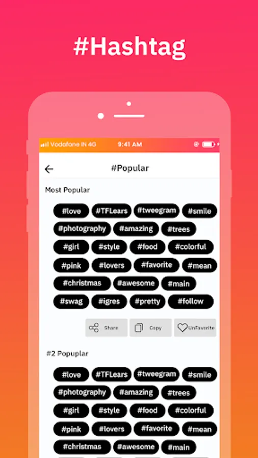 - Copy the hashtags you want to use with just one tap.