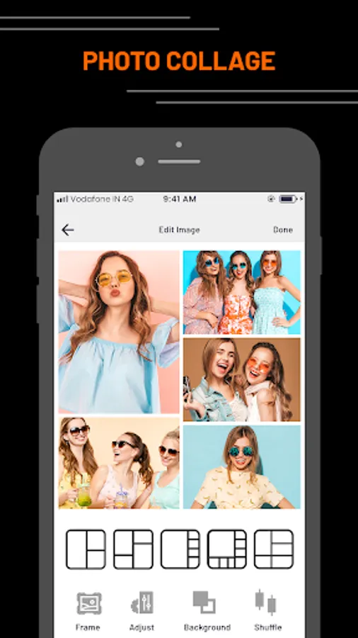 - Just select several pictures, Photo Editor instantly remix them into cool photo collage.