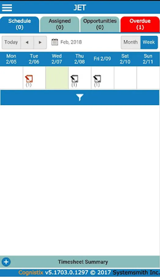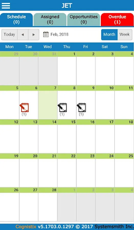 JET Mobile allows direct access to all your call report needs optimized for your phone. JET Mobile will also work on a tablet. The app makes it possible to complete call reports and travel records while at the work site. Your schedule is available to you at any time in both a Week and Month view format. You can easily schedule visits. Simply use the Start and Stop buttons to enter your call report date and time data.