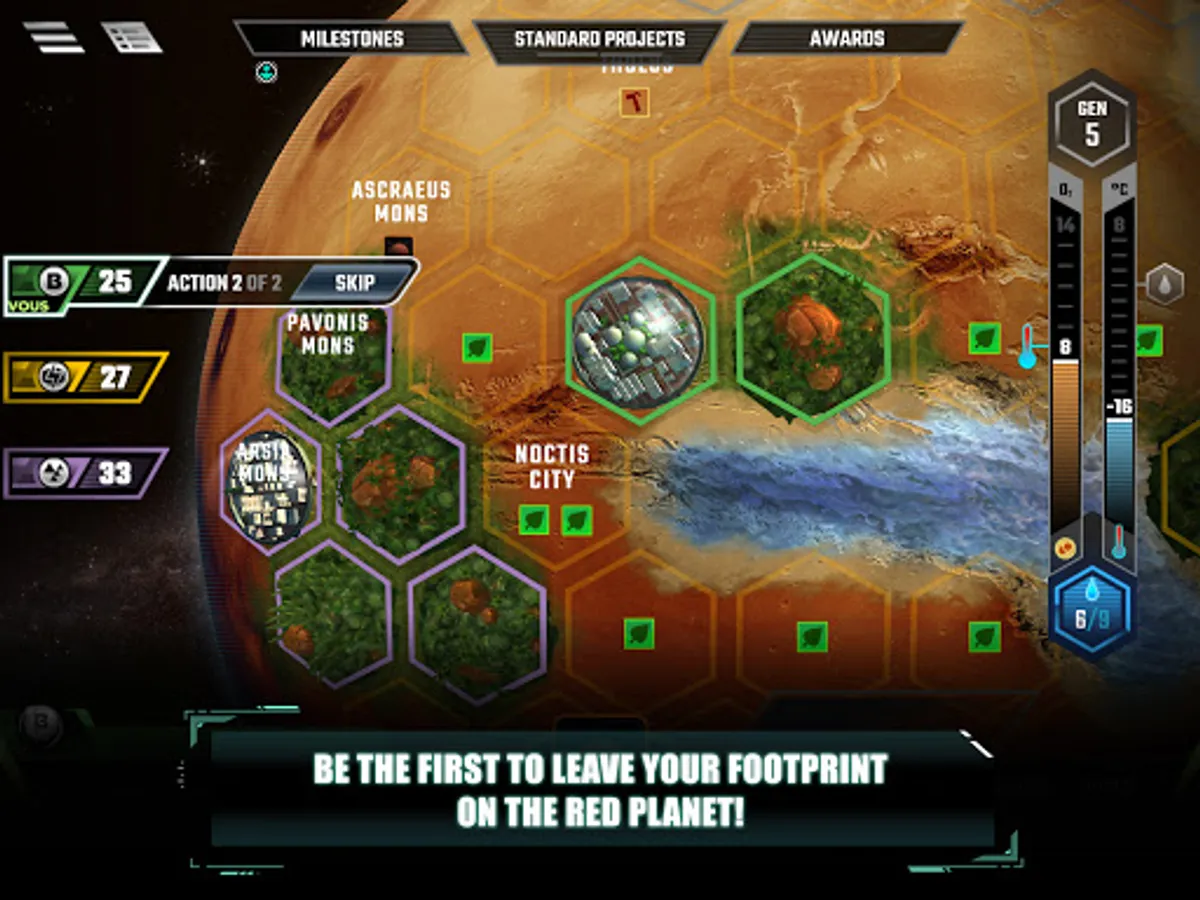 Lead a corporation and launch ambitious Mars terraforming projects. Direct massive construction works, manage and use your resources, create cities, forests and oceans, and set rewards and objectives to win the game!