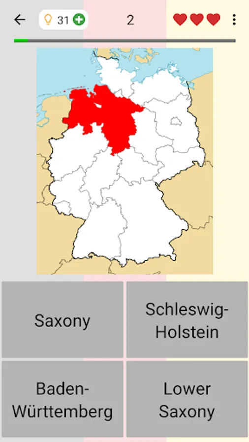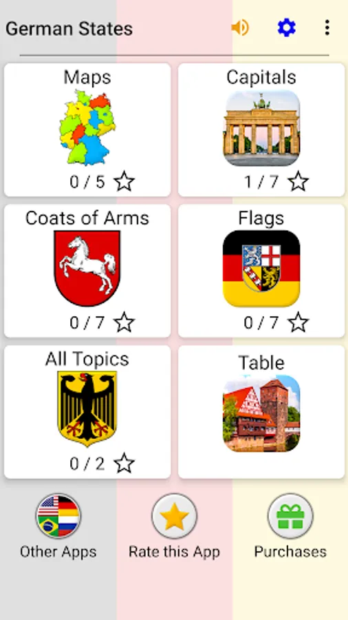 The app is translated into 9 languages, including English, German, French and many others. So you can learn the names of the German states in any of them.