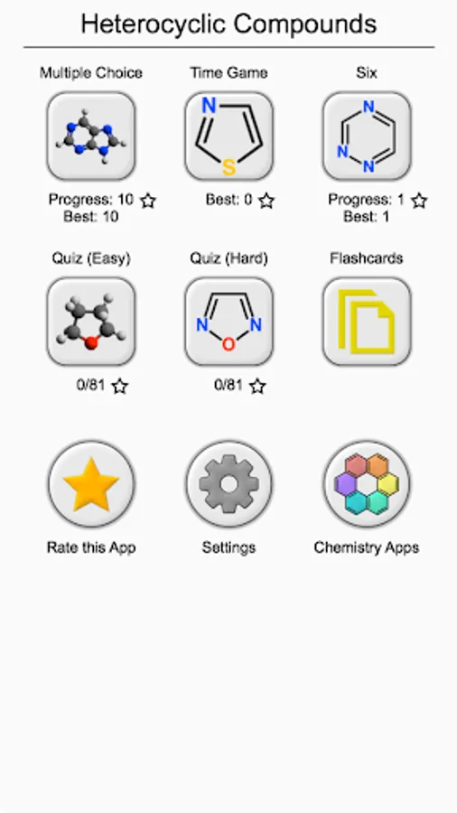 This app is the unique place to learn the structures and names of 80+ heterocycles.