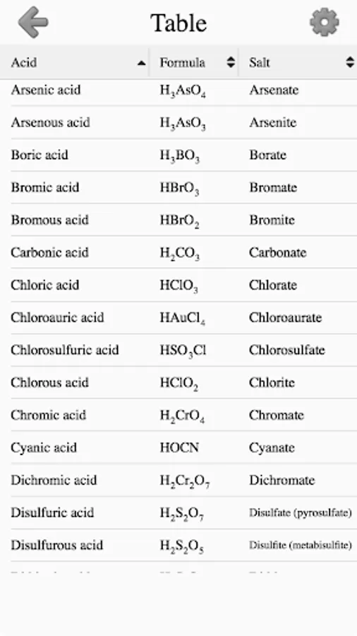 Learn names and formulas of all important inorganic acids, polyatomic ions and their salts. An app is suitable for everyone: from high school students to chemistry professors.