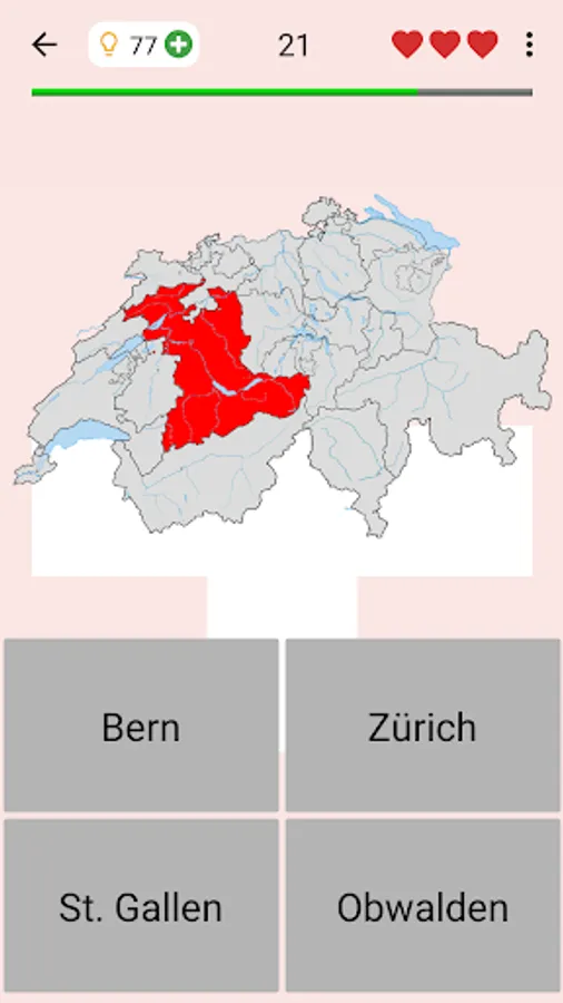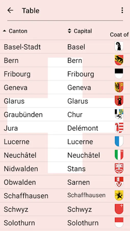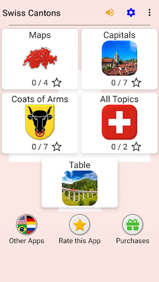 The app is translated into 9 languages, including English as well as official languages of Switzerland: German, French, and Italian. So you can learn the names of the Swiss cantons in any of them.