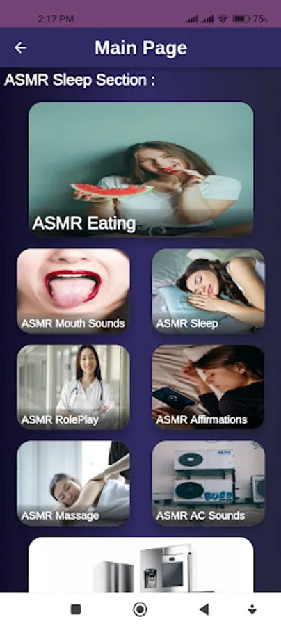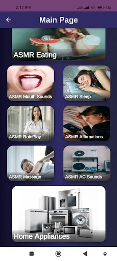 In this application you can find a wide collection of ASMR Sounds for Sleep, ASMR Sounds for Relaxation, ASMR Eating and many more.
