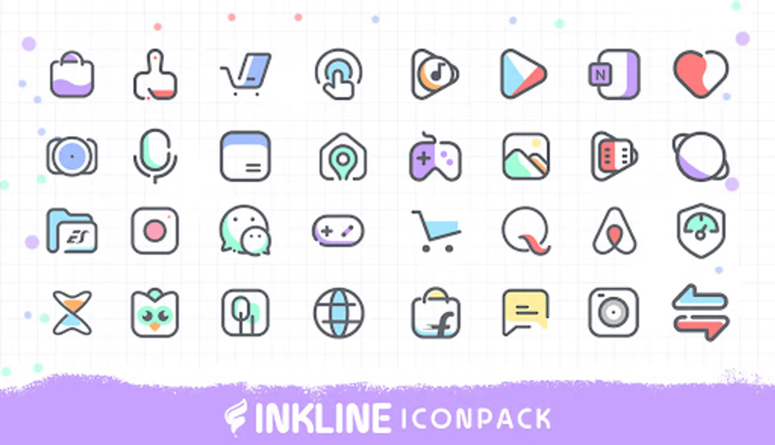 InkLine icon pack is designed with Warm vibe for instant visual bliss for your home screen. it includes a Line and Pastel Color Fill to beautify your homescreen.