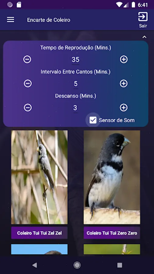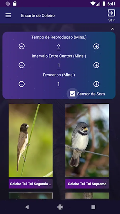 The available options let you precisely configure the sound for the booklet. Use the interval options between songs, rest time and the sound sensor (which goes into rest only after the end of the song)