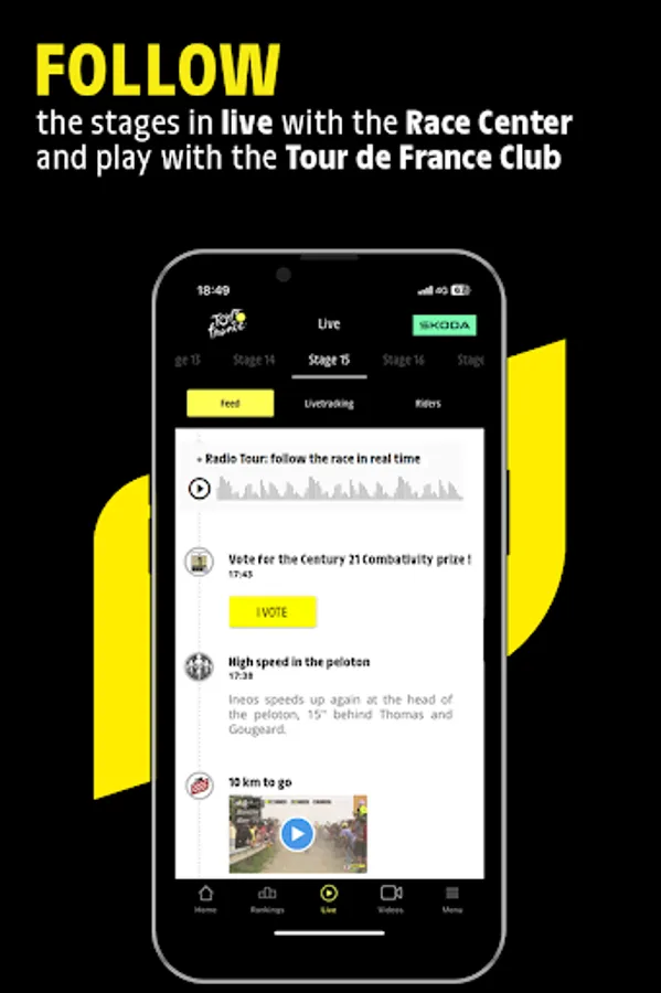 Step into the heart of the Tour de France with the official Tour de France app presented by ŠKODA!