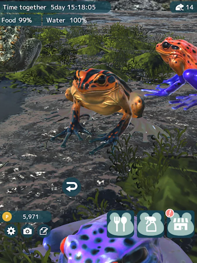· Tap a frog to observe it up close!