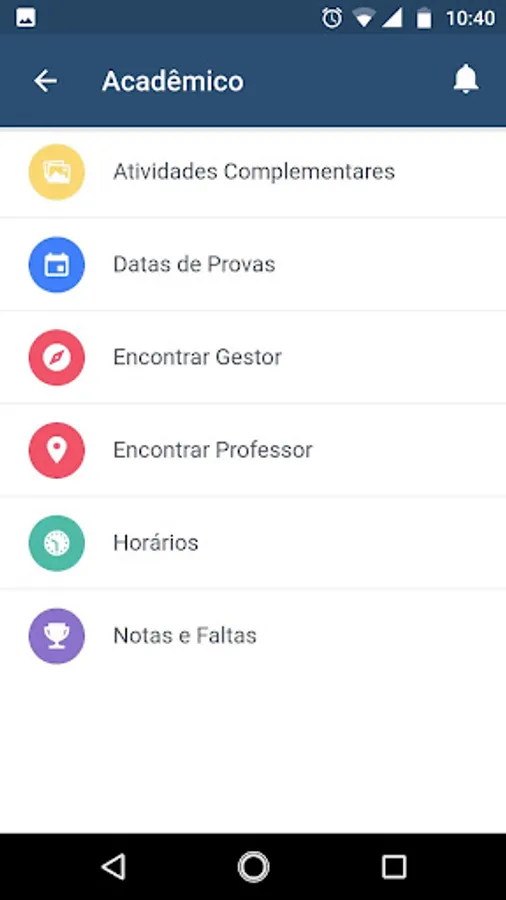 Check your timesheet, grades, absences and all protocols already requested. Use of the application requires Internet connection (4G / 3G / 2G / EDGE or Wi-Fi, as available) to check all his academic life through the modules available in the same.