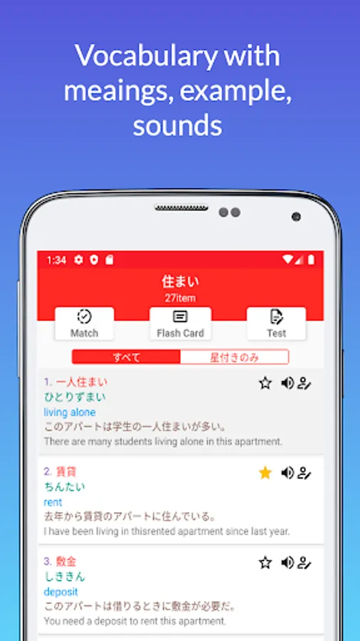 - Learn words by flash card, help you learn words more conveniently.