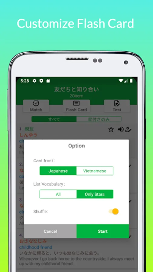 - Learn words by flash card, help you learn words more conveniently.