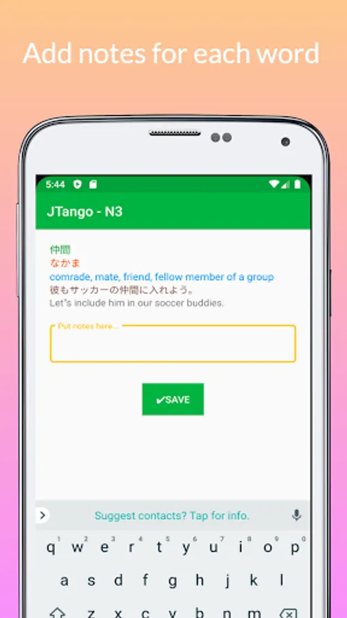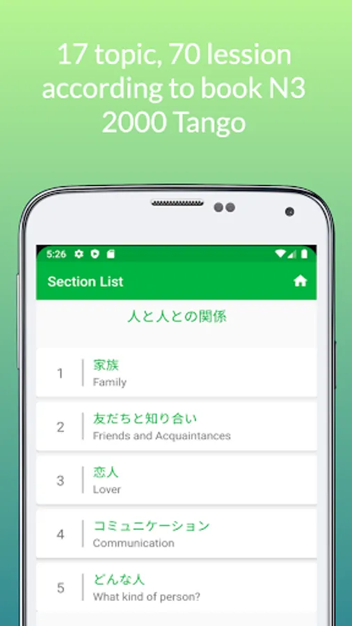 Japanese language learning app JTango N3 Tango 2000 with JLPT N3 Vocabulary from book は じ め て の 日本語 能力 試 験 N3 単 語 2000 (2000 Essential Vocabulary for the JLPT N3) (2000 tango N3).