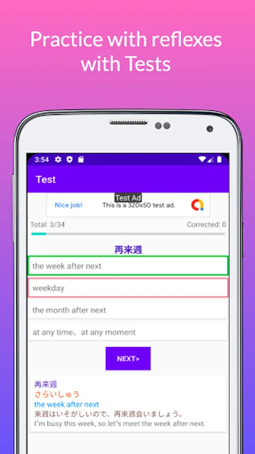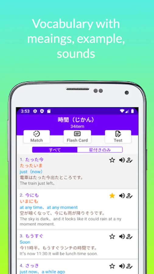 Japanese language learning app JTango N4 Tango 1500 with JLPT N4