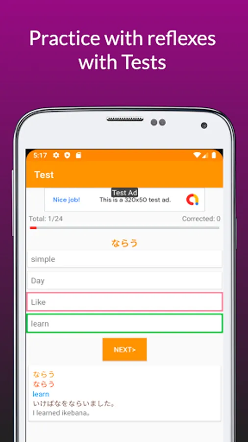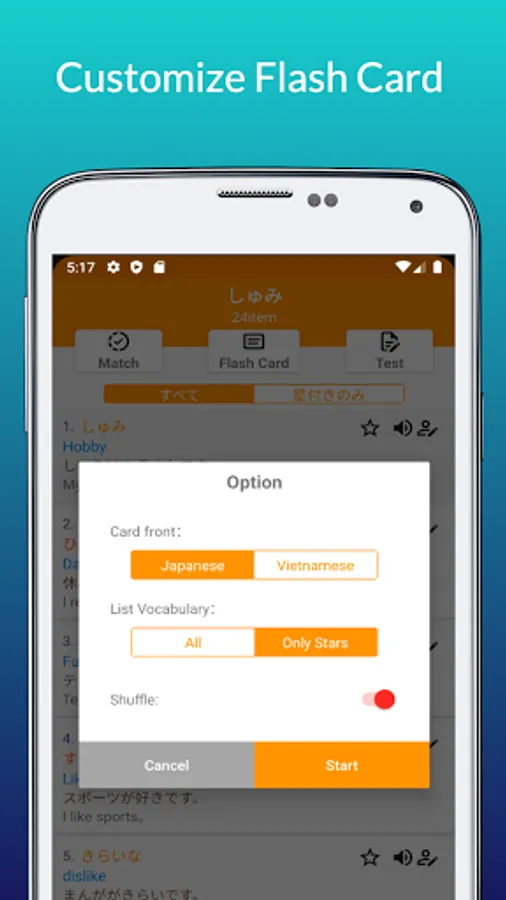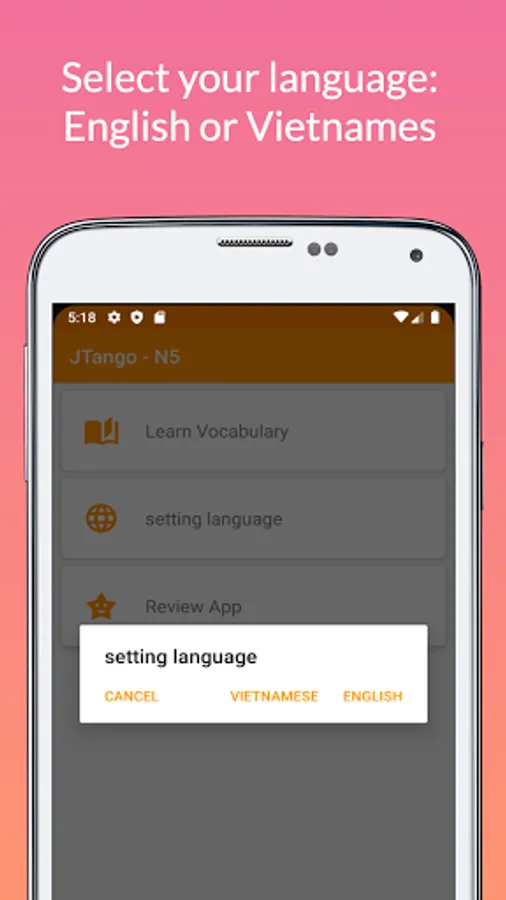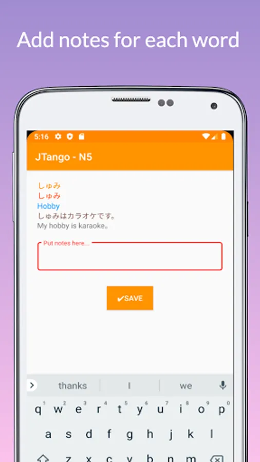 Japanese language learning app JTango N5 Tango 1000 with JLPT N5 Vocabulary from book は じ め て の 日本語 能力 試 験 N5 単 語 1000 (1000 Essential Vocabulary for the JLPT N5) (1000 tango N5).