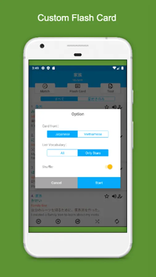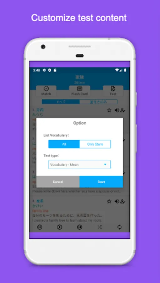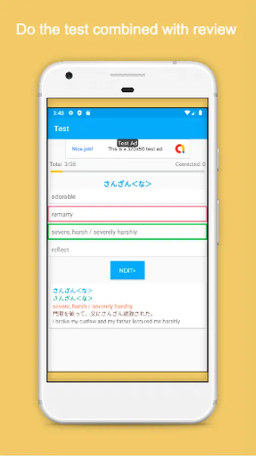 Japanese language learning app JTango N1 Tango 3000 with JLPT N1 Vocabulary from book は じ め て の 日本語 能力 試 験 N1 単 語 3000 (3000 Essential Vocabulary for the JLPT N1) (3000 tango N1).