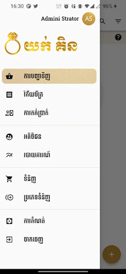 Internal store panel for seller to manage selling jewelry for Yok Kin store.