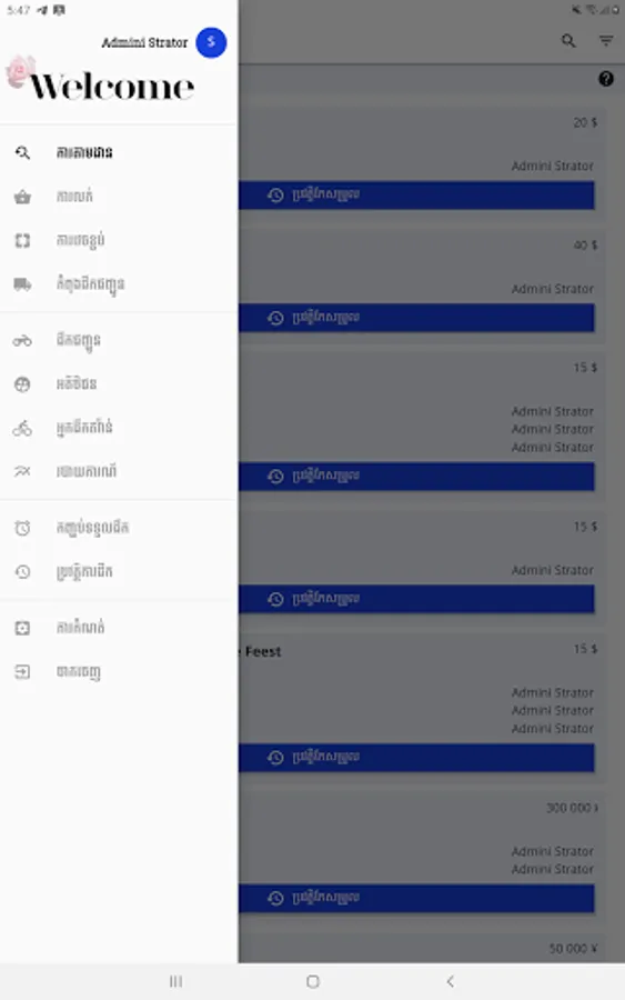 Mobile application for managing sale orders, item packaging, delivery and tracking. It shows report and system configurations.