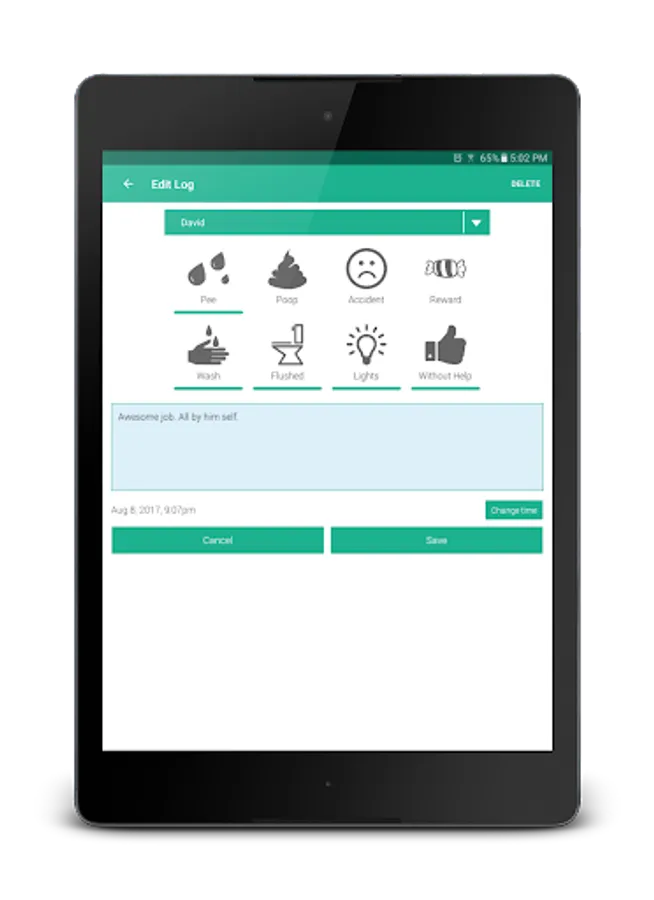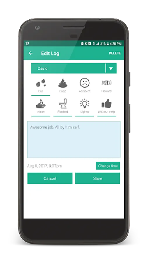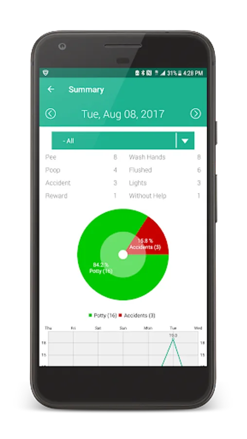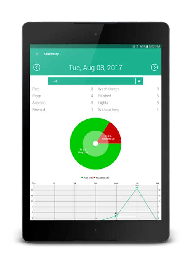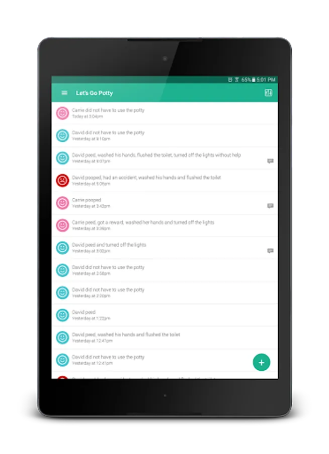 Keeping detail logs of each potty trip and giving you detailed reports, such as how many accidents the child had each day and how many trips to the potty was made each day. For those with more than one child, with the premium feature unlocked, you can add as many as you want with detailed statistics and advance filtering.