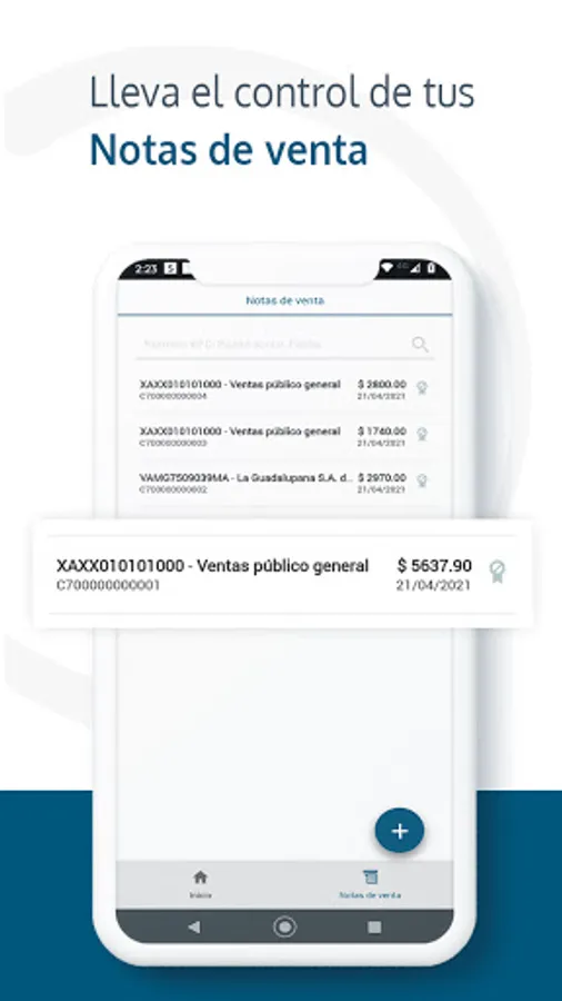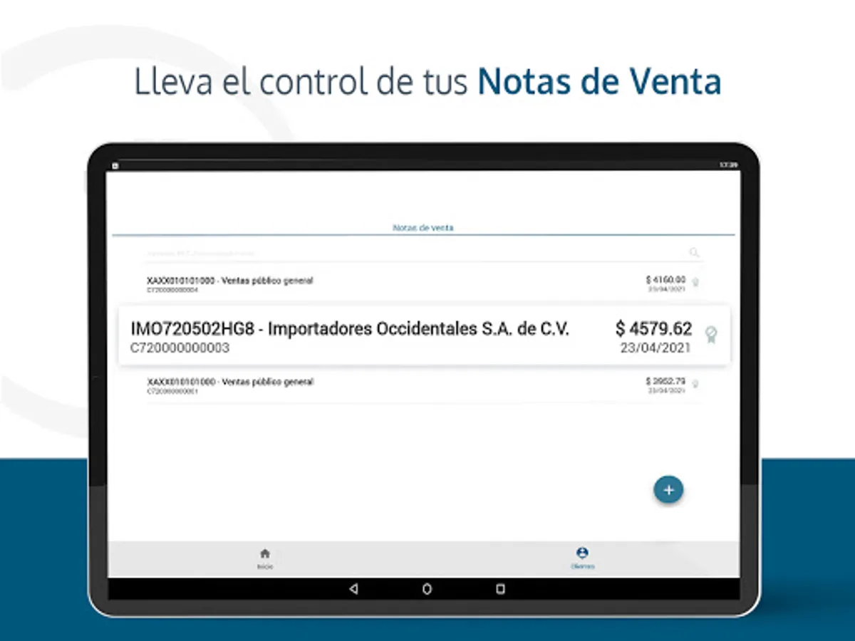 Automatically issues the electronic invoice (CFDI) of the sales note, with the customer's tax data and sends it by mail.
