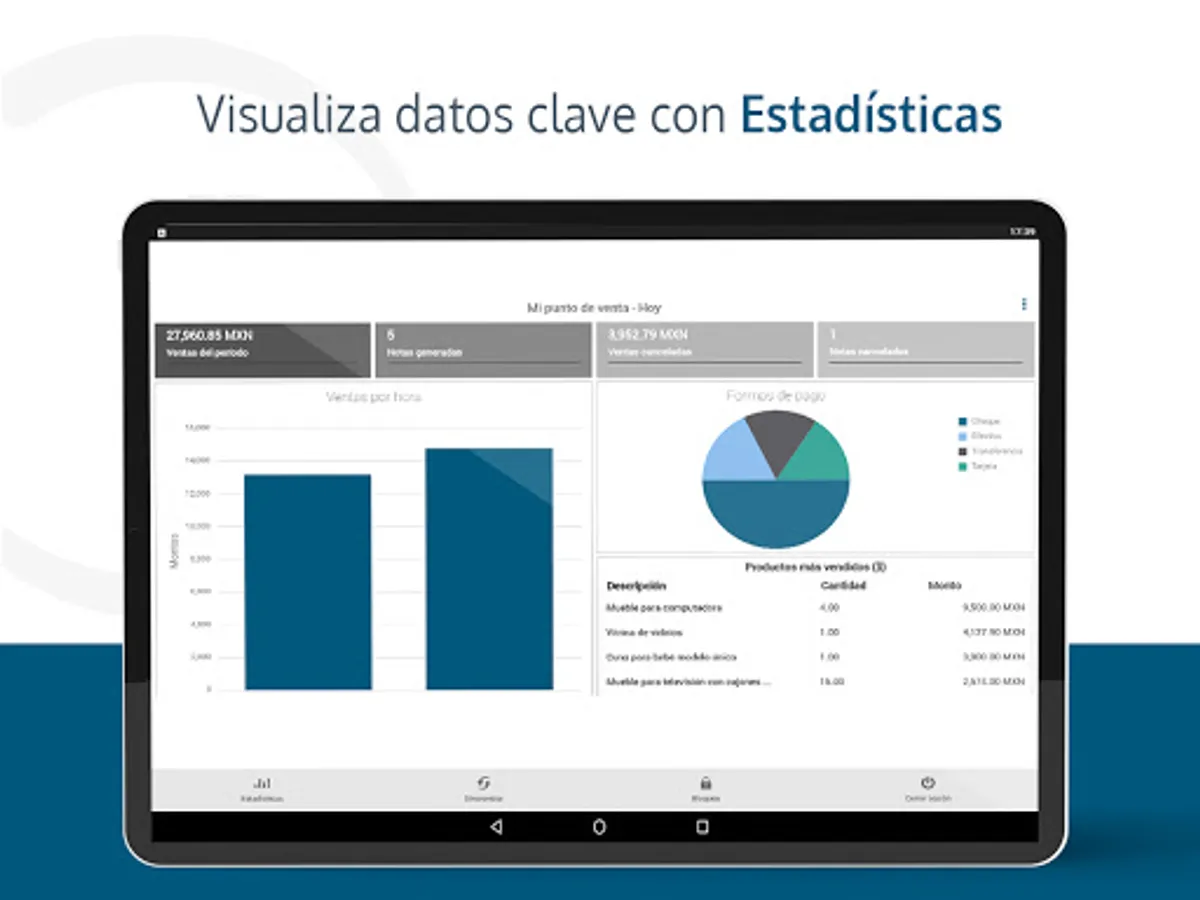 Make important decisions in real time about the best-selling products, hourly sales notes, payment methods, among others.