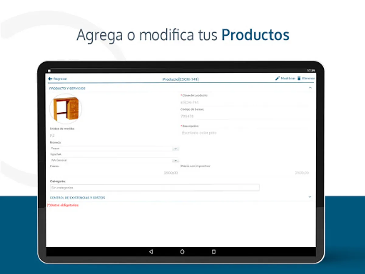 • Sell your products with a barcode, classify them by categories and add their image to facilitate their identification.