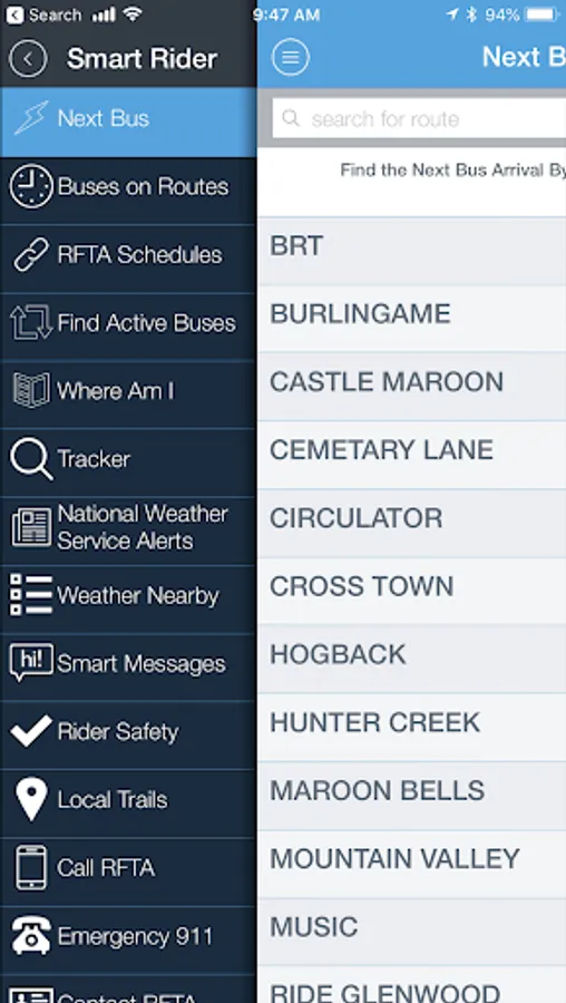 Its easier to find a bus ride with Smart Rider RFTA app. Enjoy Smart Rider because Smart Rider is designed for the Roaring Fork Valley region and Play. From grabbing a coco-latte to whitewater rafting, getting there is easier. RFTA's Bus Rapid Transit offers service from Aspen to Glenwood and Rifle area and points between. Next Bus tells you when the next bus leaves nearby stops.