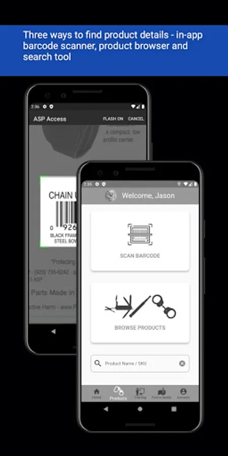 • In-app barcode scanner lets you instantly access product information by scanning the UPC code on any ASP product package