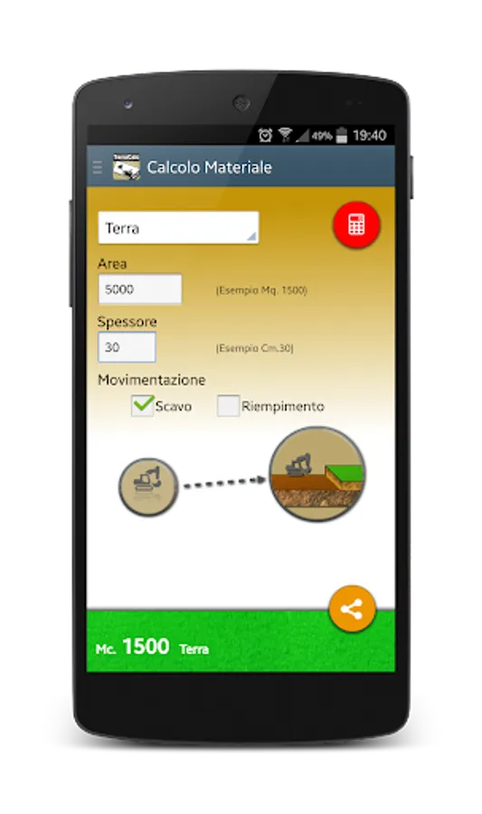 Ideal for calculating material volumes, areas, transport, thicknesses, on site with ease ....