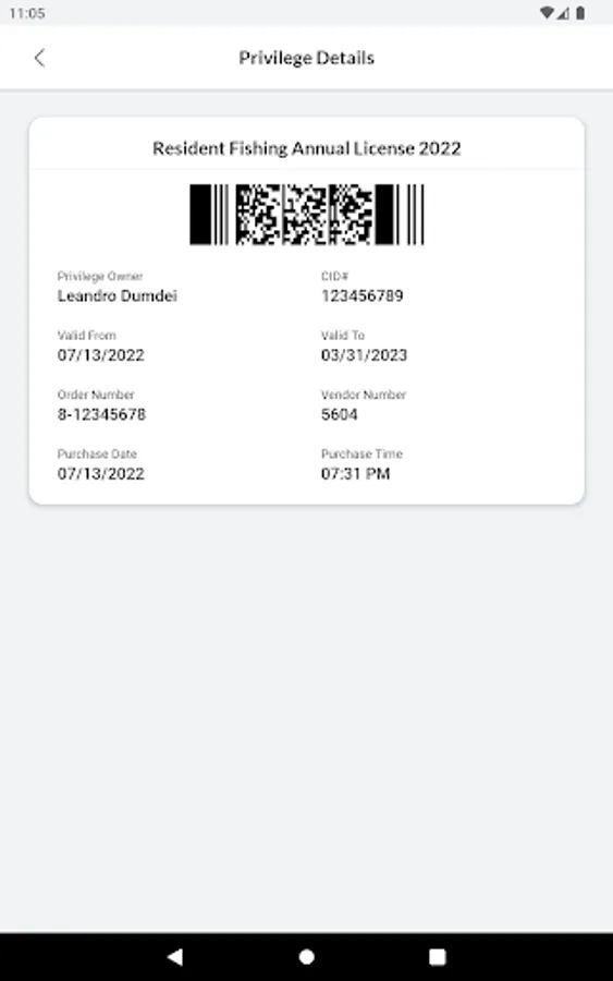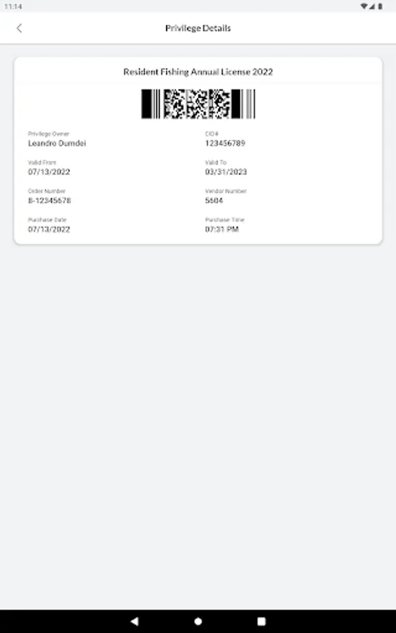 Please note: licenses with carcass tags and passes that must be displayed in a vehicle are currently not supported. Please carry proof of hunter education for all hunting licenses.