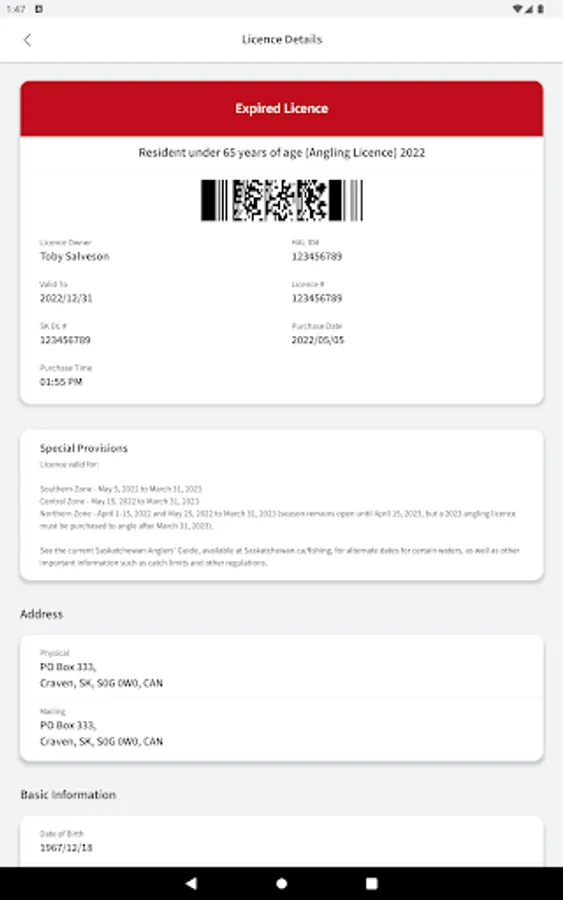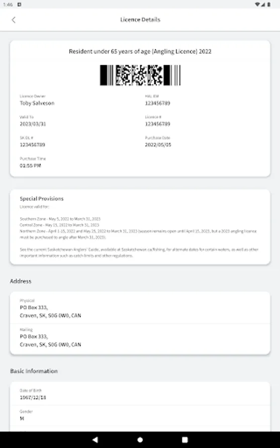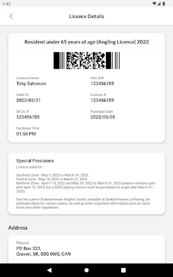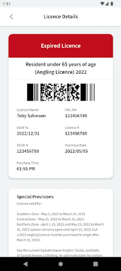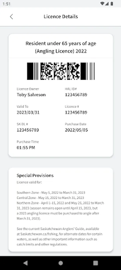 • Store and manage all Saskatchewan hunting and fishing licences in one convenient paperless location.