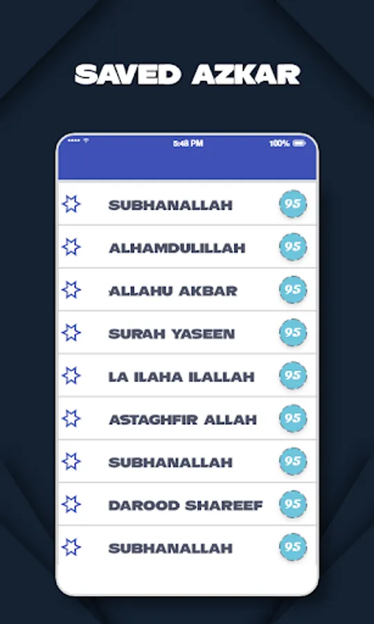 You can manage your daily azkars easily and can keep track of them. You can see all your saved Zikrs by just clicking on the saved zikr button.