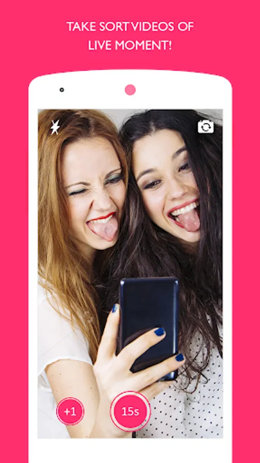 • Shoots a burst of photos and turns them into a delightful mini video. Take short videos from 1-15 seconds long.