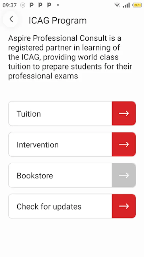 Aspire Executive Institute Student Application contains online study materials for ICAG and CITG students in Ghana to access in document and media format.