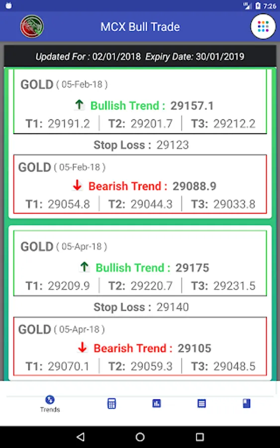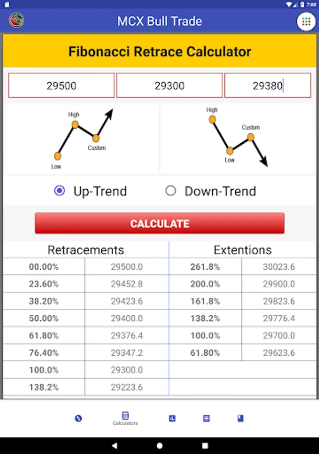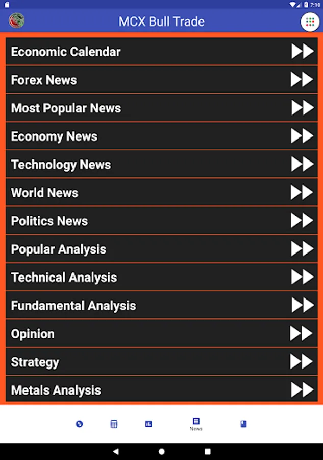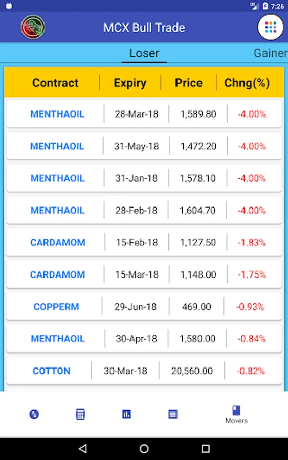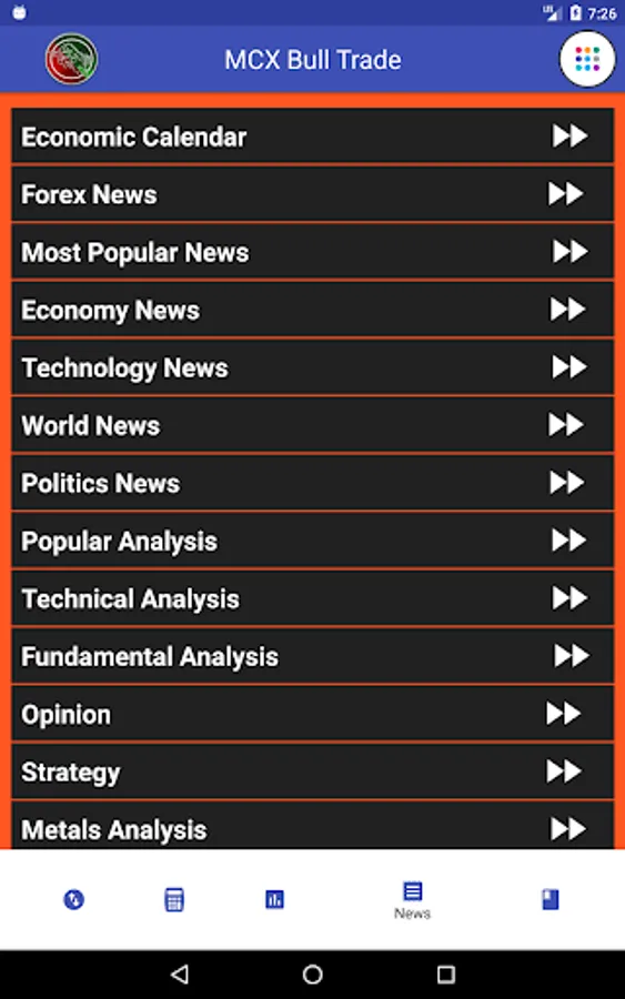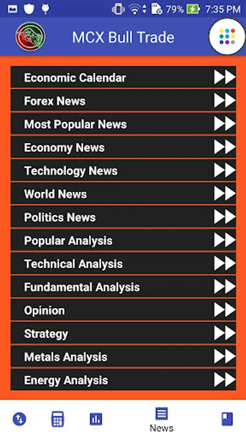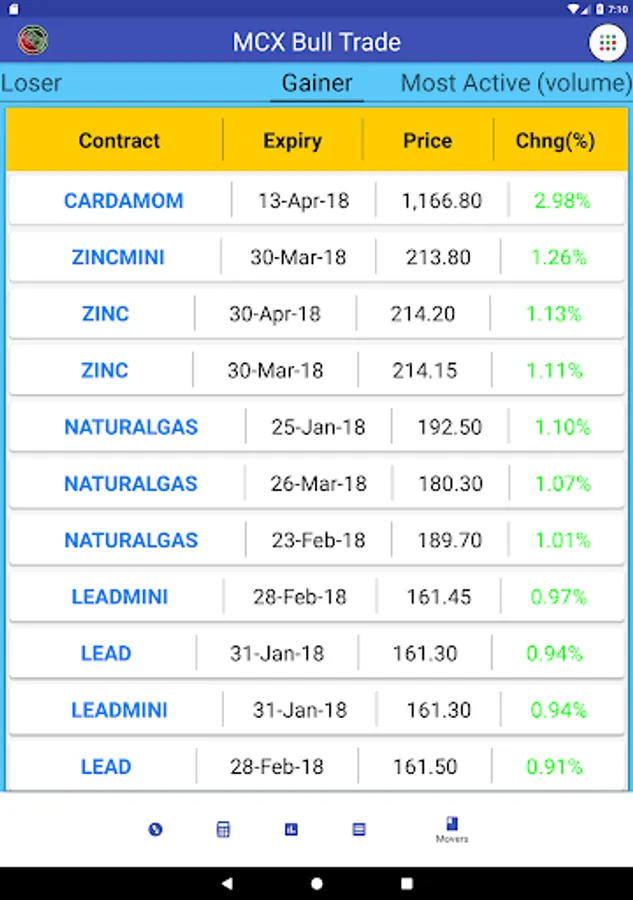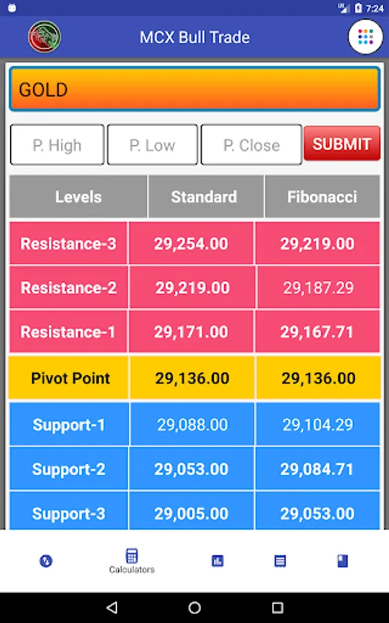 MCX Pro Trader application provide Live Commodities Price , TRENDS - Buy/Sell Signals , NEWS- Economic calendar, Forex, Economic, Politics, Technical, Fundamental, Strategy etc , MOVERS - Gainers, Losers, Most Active(Volume), Most Active(Value) , CALCULATORS- Pivot Point, Margin, Fibonacci, Average, Profit/Loss, T calculator etc