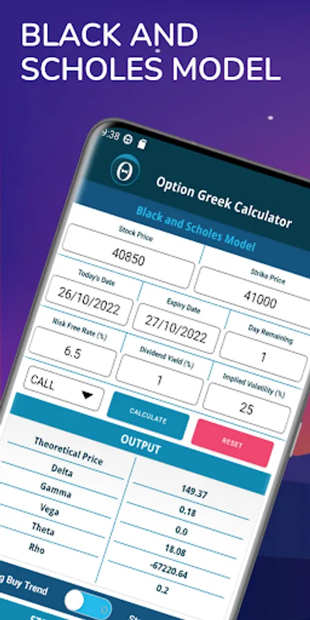 Option Greek Calculator Application calculating Option Pricing or Simulator using Black & Scholes model. This application generates Theoritical values and option greeks for Call & Put options.