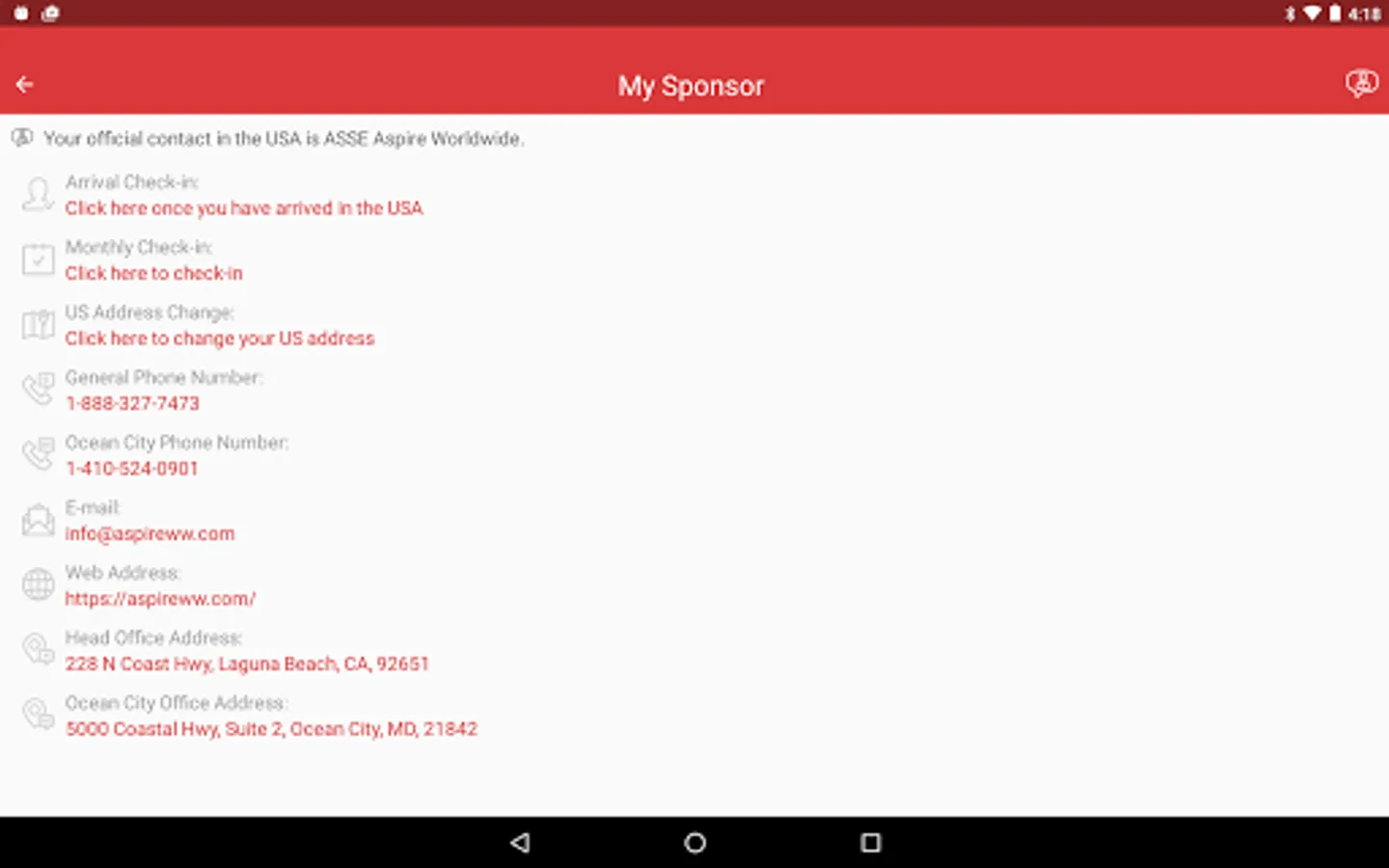 The all-in-one must-have app for the participants of the ASPIRE Summer Work Travel, Trainee and Intern program. Everything a student needs to know about the programs is only few touches away. Communication with ASPIRE has never been easier. This app allows students to personalize the necessary documents they wish to store. There’s also advice and useful tips for the students during their program in the USA.
