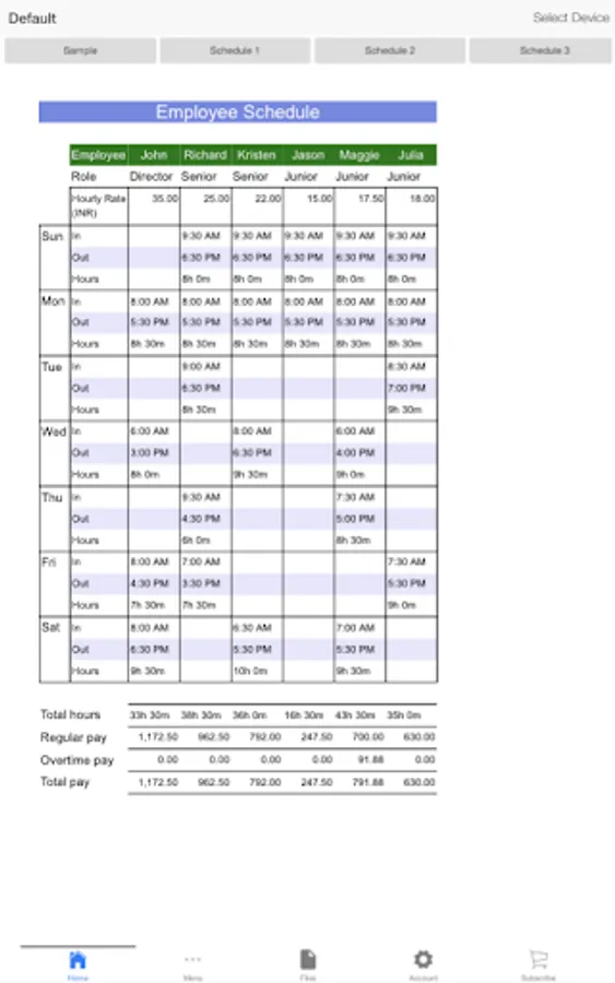 Collaborate with your employees in a hassle free manner with the Employee Schedule app. This simple app allows you to keep a track of your employees on a weekly basis. It also helps you in managing the weekly pay of your employees.