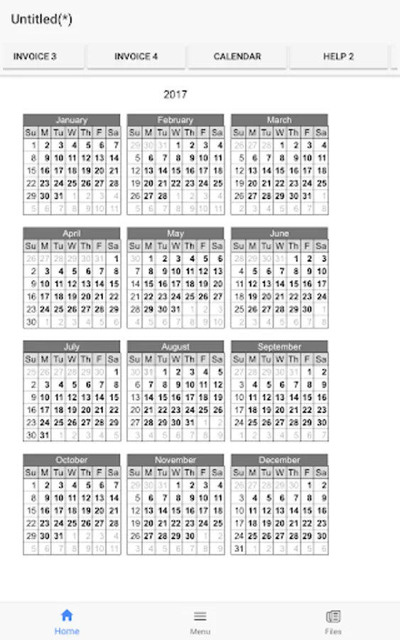 - An yearly calendar is provided to enable you to keep a log of key notes related to the invoices.