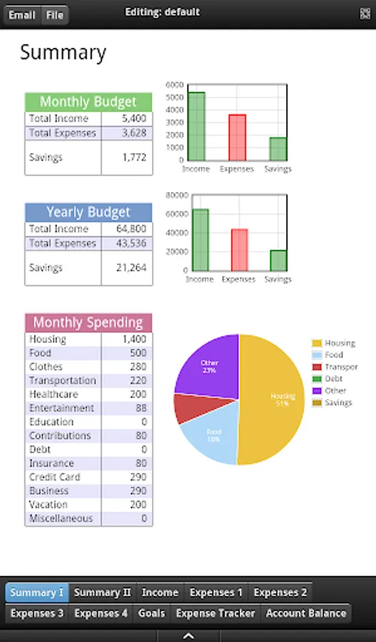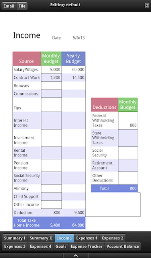 Save and Share: The app not only provides you the yearly plan, but also lets you save it, so you can see and keep a track of your progress over time. If you would like to share the goals and the budget with your family members, advisers and business partners, simply tap e-mail, to send the information instantly anytime and anywhere. Alternatively, you can locally save and email the details about your family income, expense, savings, goals and account balance. Budgeting and account tracking made simpler with Monthly Budget App.