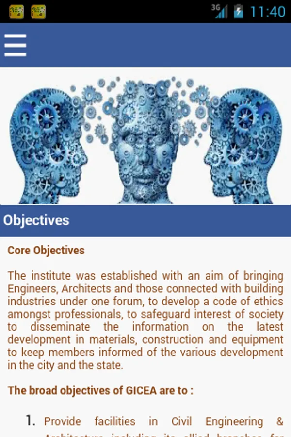 The institute was established with an aim of bringing Engineers, Architects and those connected with building industries under one forum, to develop a code of ethics amongst professionals, to safeguard interest of society to disseminate the information on the latest development in materials, construction and equipment to keep members informed of the various development in the city and the state.