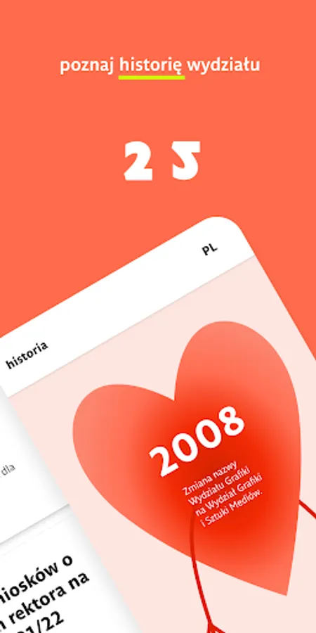 Application on the occasion of the 25th anniversary of the Faculty of Graphics and Media Art of the Academy of Fine Arts. Eugeniusz Geppert in Wrocław. The app shows events related to the anniversary, class schedules, structure and faculty, history of the faculty.