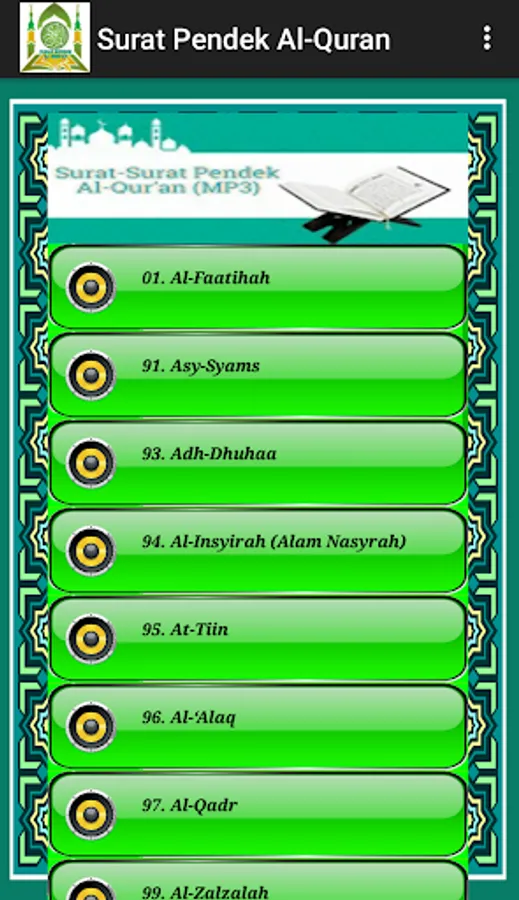 This application contains Short Surah Al-Quran MP3 Download to add to the memorization of short letters, including: