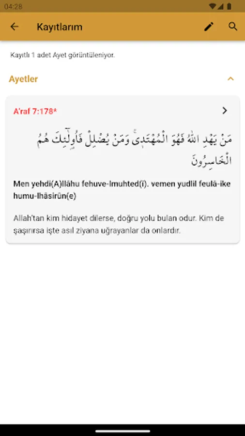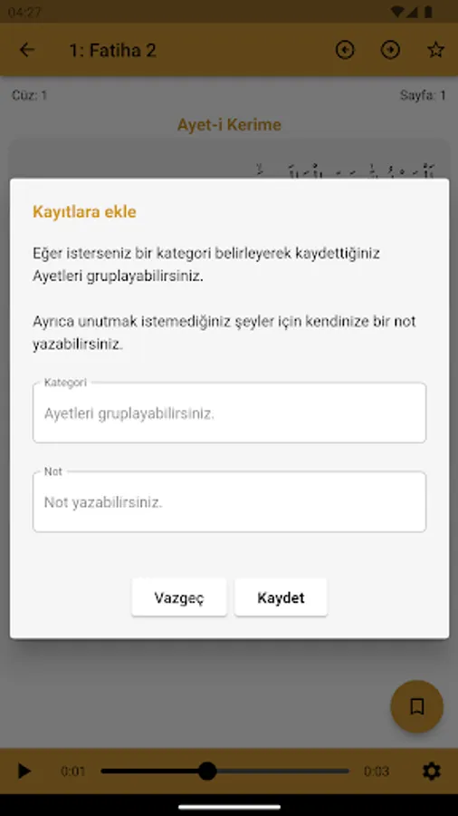 Verses you want to reach quickly; You can register with the star button on the top right of the relevant verse page. You can also write notes to yourself for each verse.