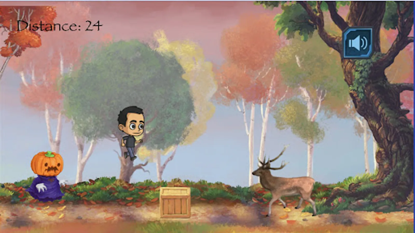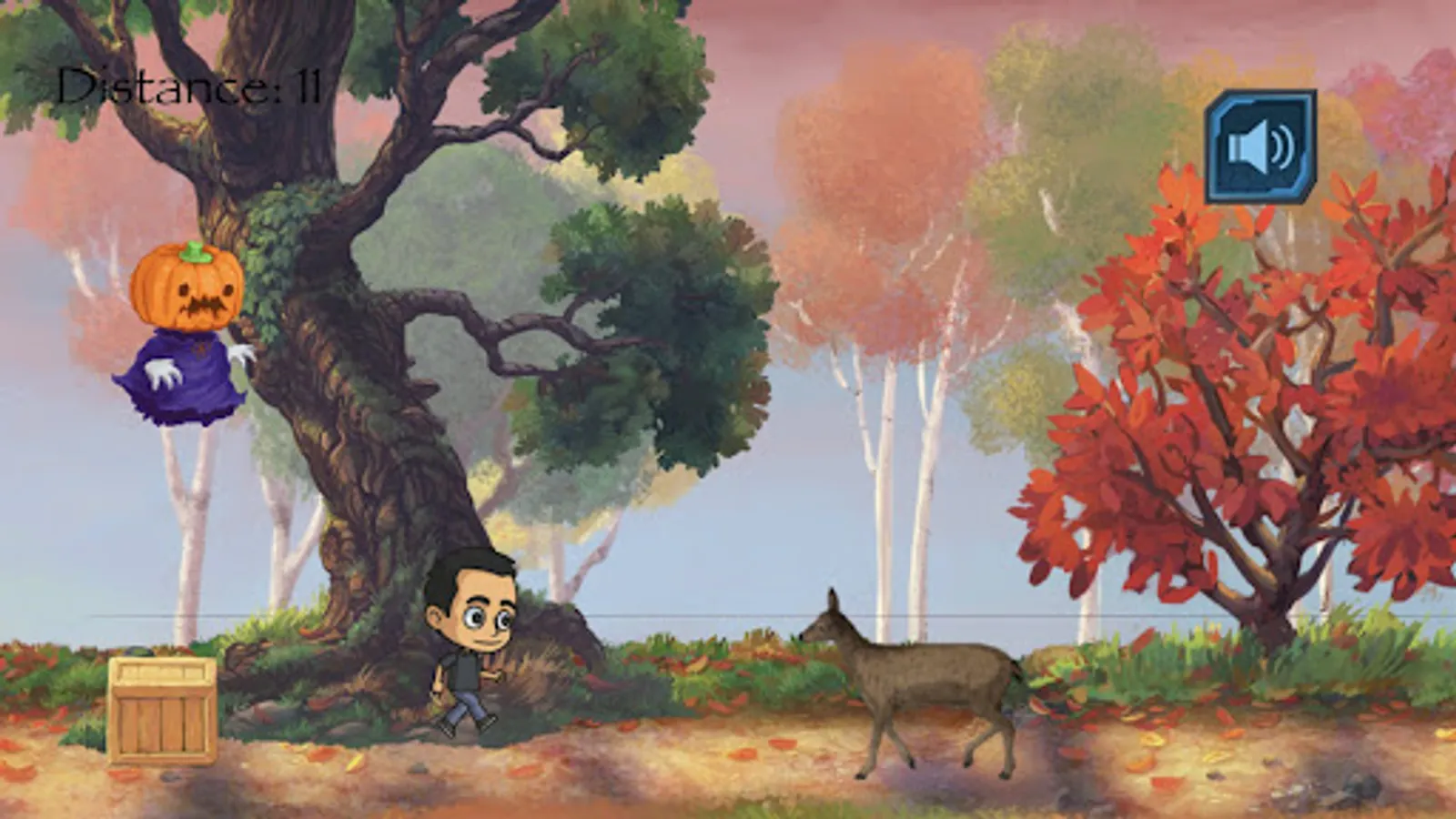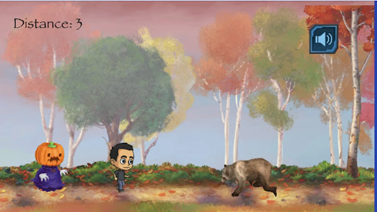 You went out for a walk in a wooded area to view the beautiful autumn scenery, but then a creepy pumpkin ghost started chasing you. Run down the path to escape the pumpkin ghost. Tap the game screen to jump over obstacles and animals you encounter, such as deer and bears. Dont let the pumpkin ghost catch you!