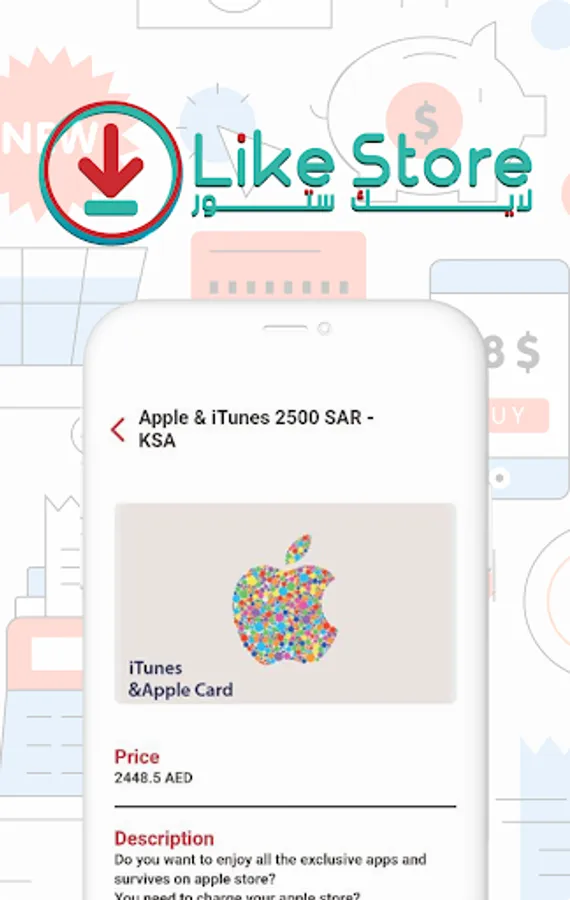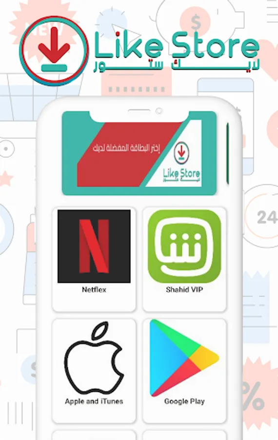 Welcome to Like Store Like Store offers most recharge cards via the Internet, such as iTunes cards, Google Play, Steam, Mobily, Zain and Sawa recharge cards, as well as PlayStation and Xbox, Facebook and Skype cards, and we always strive to add any type of cards to help the largest category of customers, and we always strive to provide Best and cheapest rates for all cards.