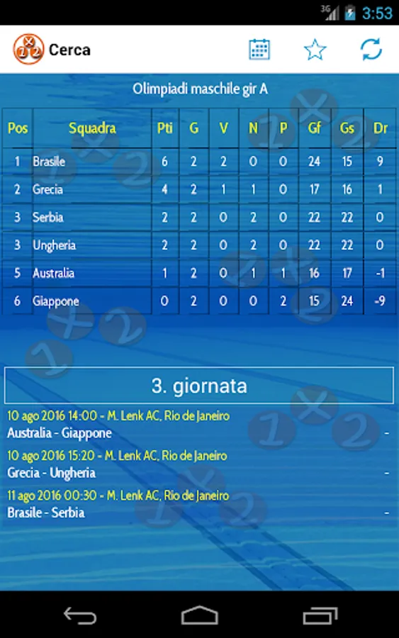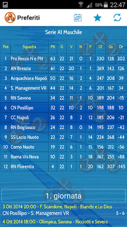 The app was created with the aim of promoting as much as possible the dissemination of the championships already disclosed on our website www.1x2pallanuoto.com, allowing users to have an increasingly direct contact with the world of water polo.