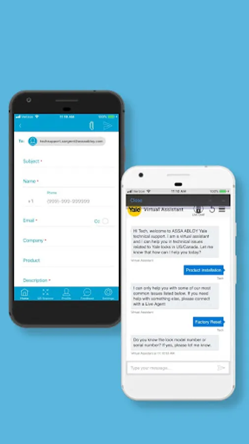 This app provides access for the listed ASSA ABLOY Customer Support departments with the ability to share real time video and audio from your phone or tablet with our Technical Support Representatives.