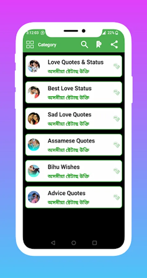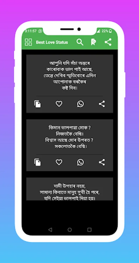 If you are searching for the Assamese Quotes app or the Assamese breakup quotes, then this app is for you. Here you can also find Assamese messages and status images for WhatsApp Status.