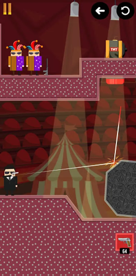 Whether you're a shooter or a puzzler, "Bullet of Spy" is a challenge ready for you. This is the best physics shooter game there is. Never miss a dull moment with this easy-to-learn and easy-to-play game that is almost IMPOSSIBLE to master. Battle notorious villains. Become a legend of "Bullet of Spy". Start your mission and never stop shooting!